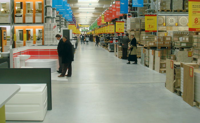 Concrete floorings for hypermarket for building materials, Samsun, Turkey.