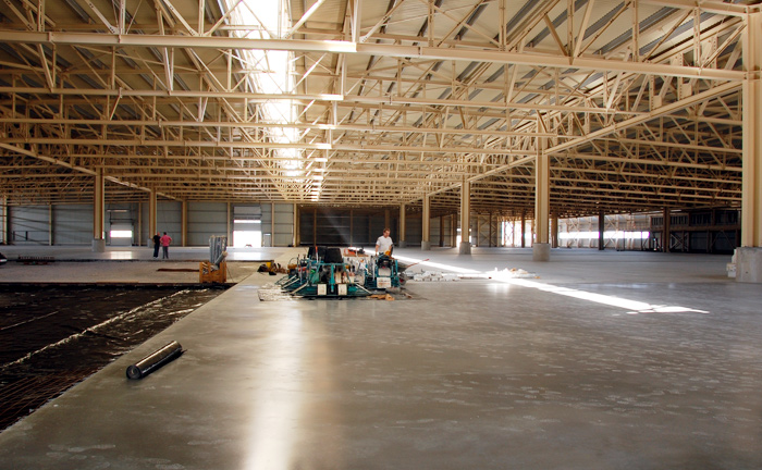 Jointless steelfibre concrete floor with hardener and special joint profile Dilat C, production facility, Ras al Kaima, The Emirates.